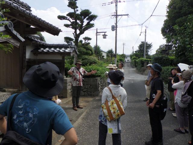 第2回(9月16日)は、東川さんのガイドによる出水麓武家屋敷群のまちあるきを行いました。五万石溝跡や諏訪神社などを巡り、ガイドとして伝える知識や技術を現場で学ぶことができました。